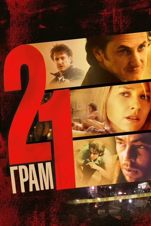 У серці американської пустелі, де вага душі вимірюється лише 21 грамом, розгортається драма, що розриває межі життя й смерті. Пол,... хворий на серце, отримує другий шанс від невідомого донора – і з ним приходить тінь минулого, яка перевертає його світ догори дном. Тіло, що пульсує новою силою, несе в собі відлуння трагедії: випадкова аварія, яка забрала життя чоловіка на ім'я Пол, батька двох дітей. Джилл, зруйнована горем вдова, блукає у лабіринті спогадів, де кожна мить без коханого – це вічність у пеклі. Її болісна туга зіштовхується з Полом, і разом вони шукають відповіді в хаосі емоцій. Але тінь помсти нависає над Джеком – колишнім ув'язненим, чиї руки стали знаряддям долі. Переповнений провиною, він намагається спокутувати гріх через релігійний екстаз, та минуле не відпускає, перетворюючи його на жертву власного сумління. "21 грам" – це не просто історія про втрату, а глибокий розтин людської душі, де смерть стає каталізатором для несподіваних зв'язків. Нелінійний потік подій, ніби мозаїка з уламків сердець, змушує глядача переосмислити сенс існування. У світі, де кожна мить важить більше за вічність, герої борються за прощення, помсту та відродження. Фільм, що пульсує напругою й емоційною глибиною, нагадує: іноді, щоб жити, треба втратити все. Зірковий каст на чолі з Шоном Пенном, Наомі Воттс та Бенікіо дель Торо перетворює цю історію на незабутній кінематографічний шедевр, який лишає слід у серці назавжди.