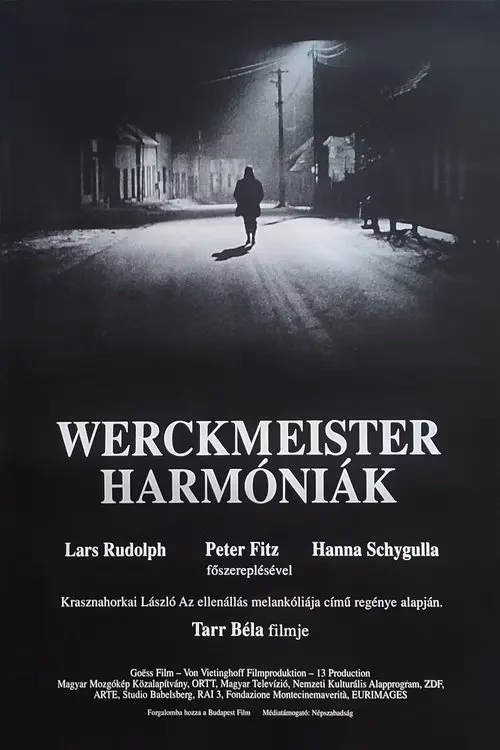 "Гармонії Веркмейстера" – це шедевр Бела Тарра, де час зупиняється в апокаліптичній атмосфері маленького містечка.. Довгі плани, мінімальний діалог і гра з кадром створюють відчуття неминучого хаосу. Фільм про людську природу, страх і гармонію, що руйнується, заворожує своєю філософською глибиною. .
