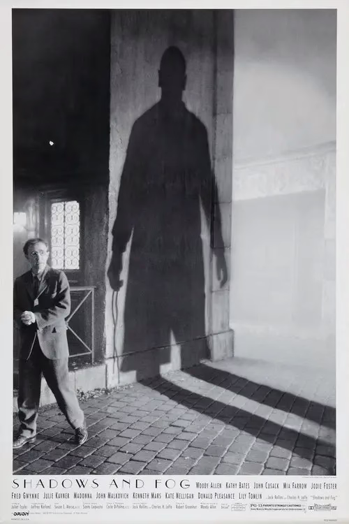 Фільм "Тіні й туман" - це чарівний лабіринт абсурду від Вуді Аллена.. Туманне місто оживає у чорно-білому колориті, де тіні шепочуть таємниці. Комедія переплітається з екзистенційними роздумами, створюючи унікальну атмосферу. Обов'язковий перегляд для поціновувачів інтелектуального кіно. .