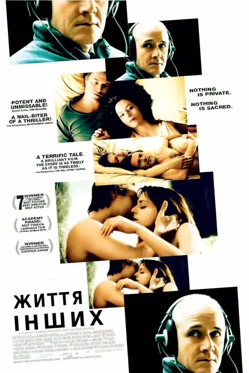 "Життя інших" – шедевр, що занурює у похмурий світ Штазі.. Флоріан Генкель фон Доннерсмарк майстерно показує, як стеження руйнує душі. Ульріх Мюе блискуче втілює агента, чия трансформація змушує задуматися про свободу. Фільм про людяність у тоталітарному пеклі, що не залишає байдужим. .